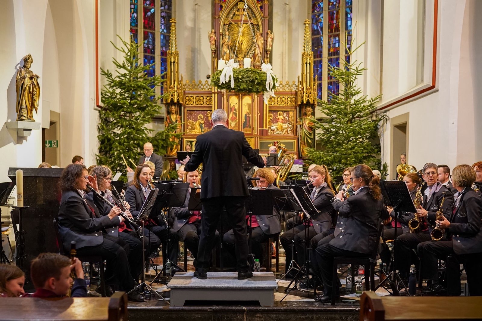 (15.12.2025) – …war die Gangelter Pfarrkirche St. Nikolaus, als sich nach dem Warmspielen und Abstimmen die beiden ersten Reihen des Musikvereins unter die Zuhörenden mischten, um den vielen Mädchen, Jungen und jungen Erwachsenen Platz zu machen. Denn sie machten am heutigen 3. Adventssonntag den Anfang und zeigten keinerlei Lampenfieber bei den drei Stücken Bandtime, Clogdance und Lasst uns froh und munter sein. Das Publikum belohnte sie anschließend mit einem kräftigen Applaus und Leo Wennmacher, der an diesem Tag durch das Programm führte, machte sich – mit Blick auf das 100jährige Bestehen im nächsten Jahr – keine Sorgen um die Zukunft des Vereins.